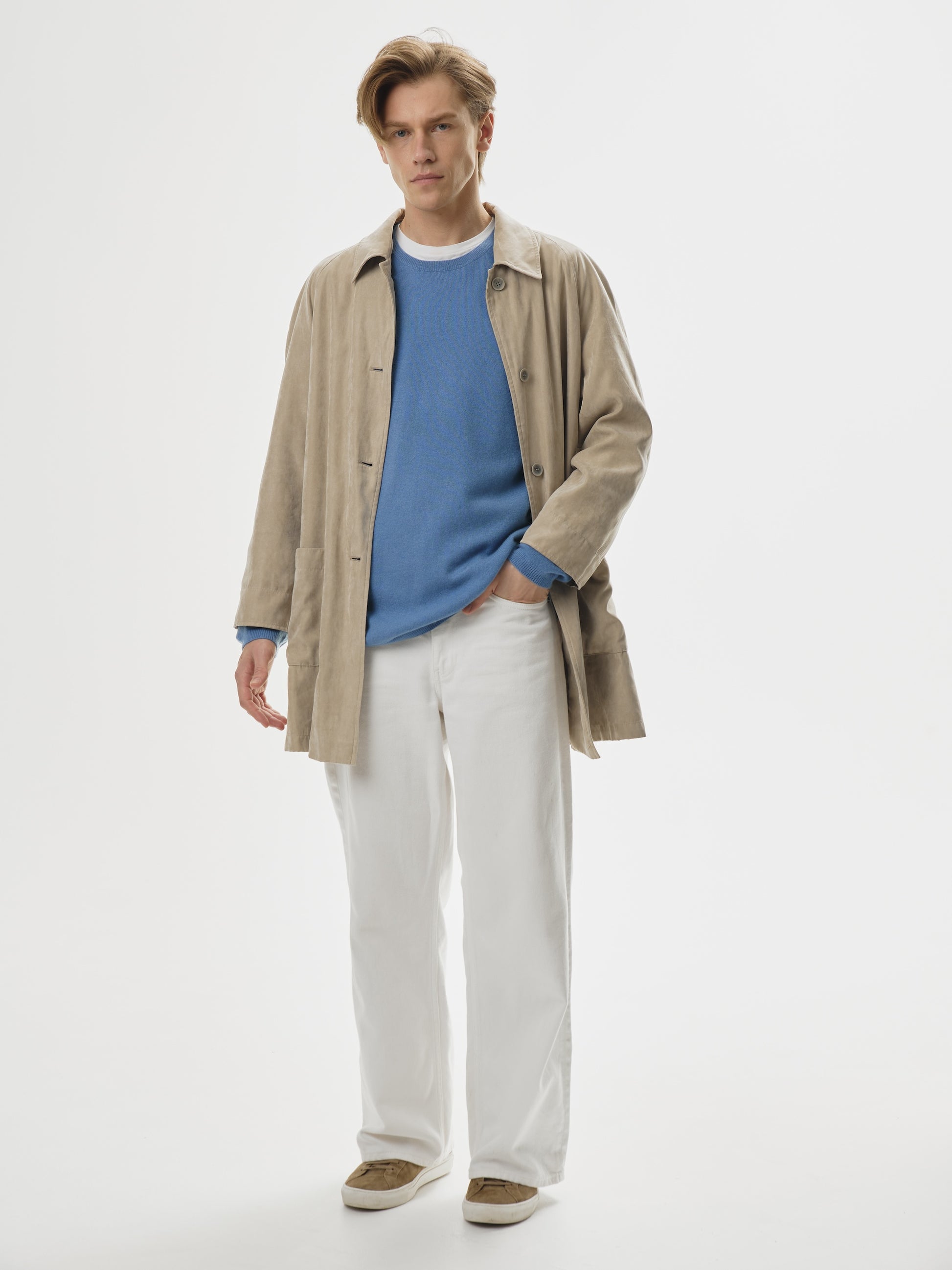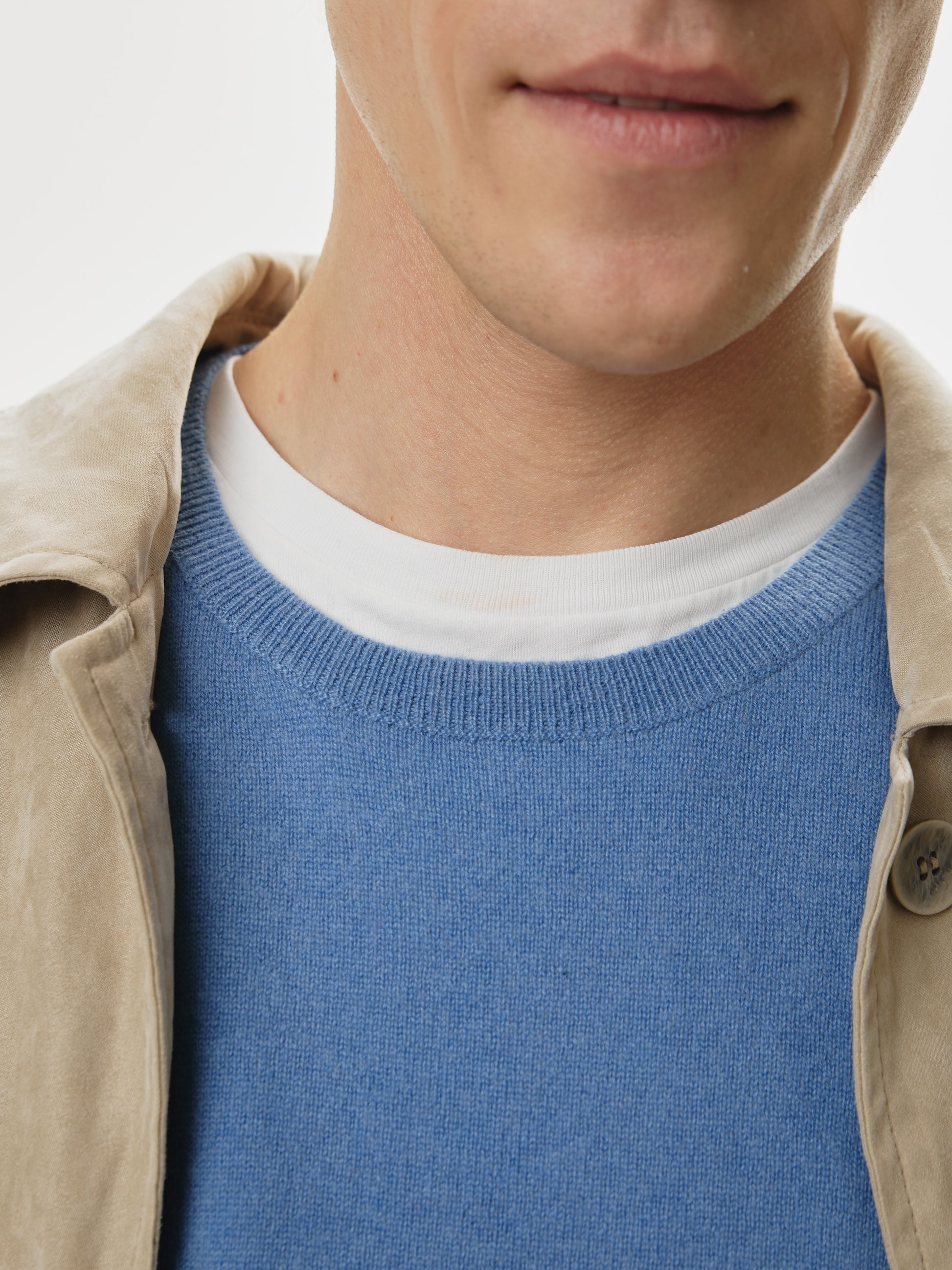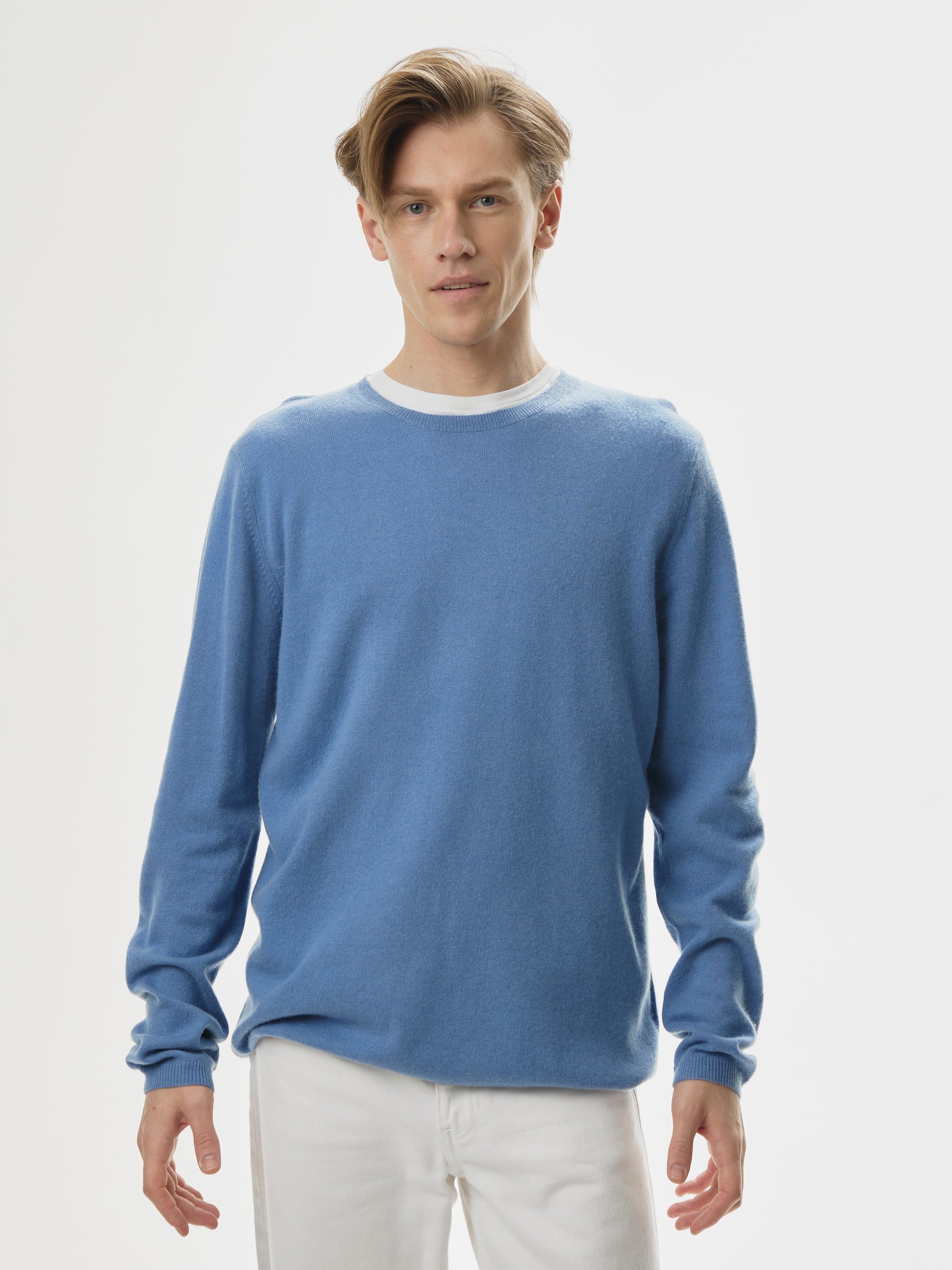 Ein Rundhalspullover aus reinem Kaschmir: spürbar weich, angenehm leicht und klar in der Linie. Feine Maschen bilden eine ruhige Struktur, die sich natürlich anfühlt und verlässlich wärmt. Die Regular-Passform sorgt für Bewegungsfreiheit, ohne an Eleganz zu verlieren. Die Farbe „Hellblau“ unterstreicht besonders graue Augen und verleiht dem Blick mehr Tiefe in kühlen Blaunuancen. Sie ist zudem hervorragend kombinierbar mit Weiß, Grau und Schwarz. Ein zeitloses Essential für gepflegte Looks im Alltag und darüber hinaus. Die Oberfläche wirkt glatt, der Griff seidig; so entsteht ein Gefühl von Leichtigkeit, das durch den Tag trägt.